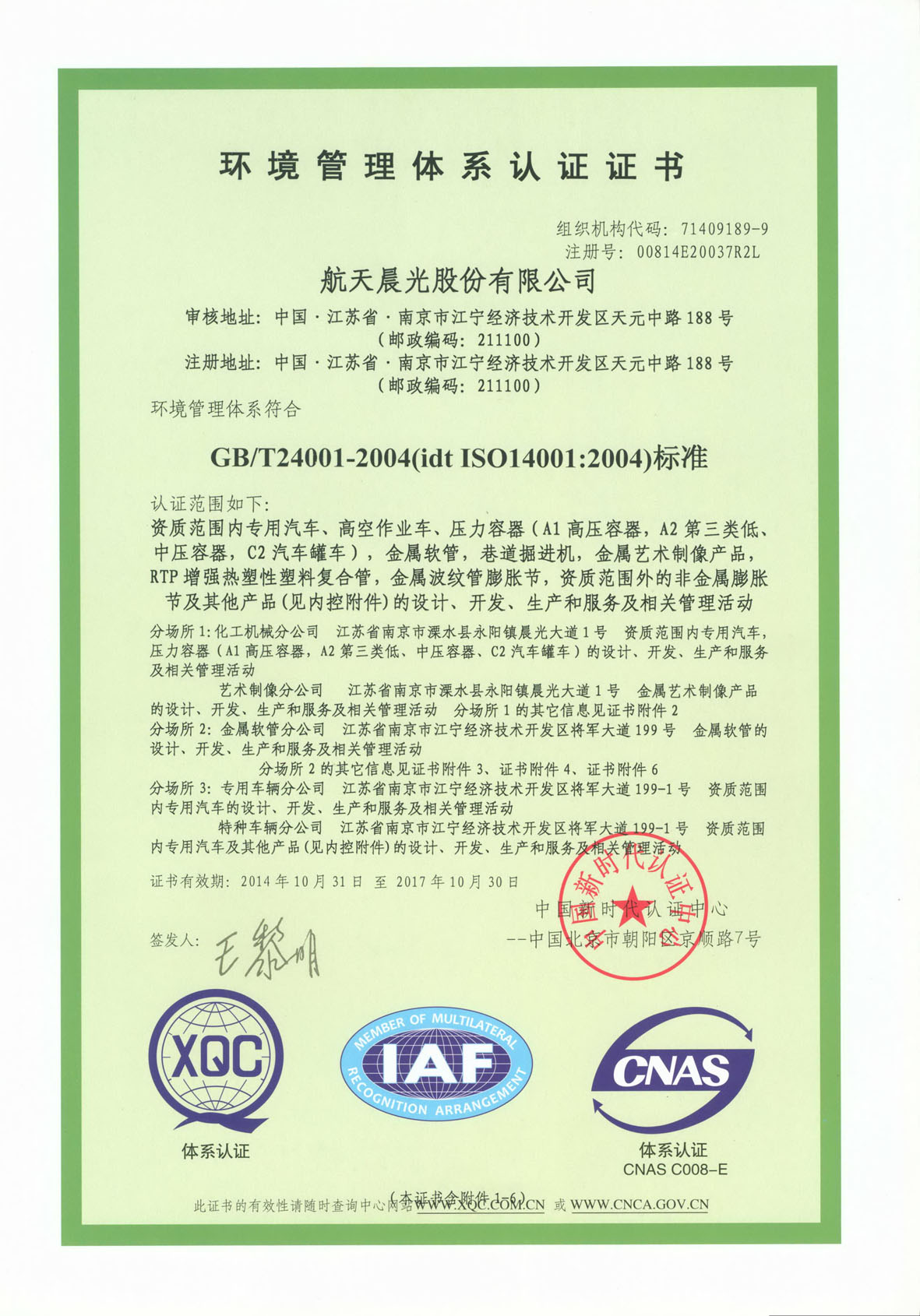 環境管理體系認證證書