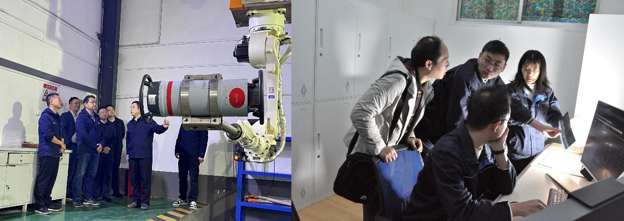 張旭海一行先后到化機分公司劉毅勇技能大師創(chuàng)新工作室、無損檢測工段和晨光藝術(shù)工程生產(chǎn)制造車間進(jìn)行了實地調(diào)研,并與劉毅勇技能大師創(chuàng)新工作室?guī)ь^人及團隊成員進(jìn)行了深入交流,詳細(xì)了解工作室的制度建設(shè)、日常運行、示范引領(lǐng)作用發(fā)揮、人才培養(yǎng)、創(chuàng)新成果等情況,認(rèn)真聽取了化機分公司近期研發(fā)的“AEROSUN EagleEye”智能識別軟件系統(tǒng)的開發(fā)進(jìn)展。