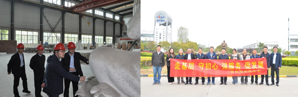 近日,江蘇省總工會機冶石化工會工作委員會主任張旭海一行到公司調(diào)研。公司黨委副書記、副總經(jīng)理孫建航,工會主席魏志剛、化機分公司、晨光藝術(shù)工程相關(guān)負(fù)責(zé)人陪同調(diào)研。