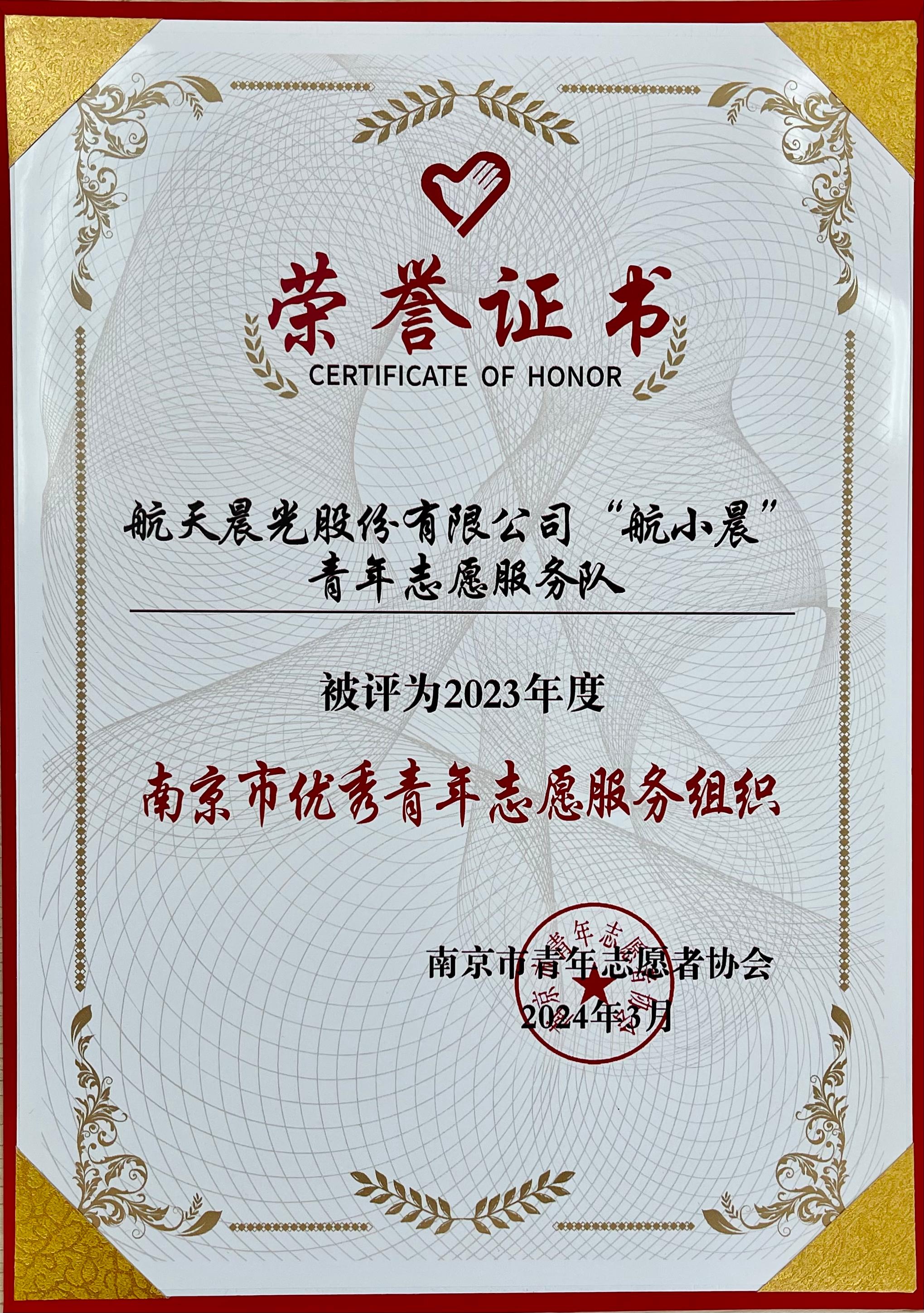 近日,南京市青年志愿者協會公布2023年度南京市青年志愿者服務典型尋訪活動結果,經廣泛動員、擇優推薦、集中評審,航天晨光“航小晨”志愿者服務隊獲評2023年度南京市優秀青年志愿服務組織,一名青年獲評2023年度南京市優秀青年志愿者。