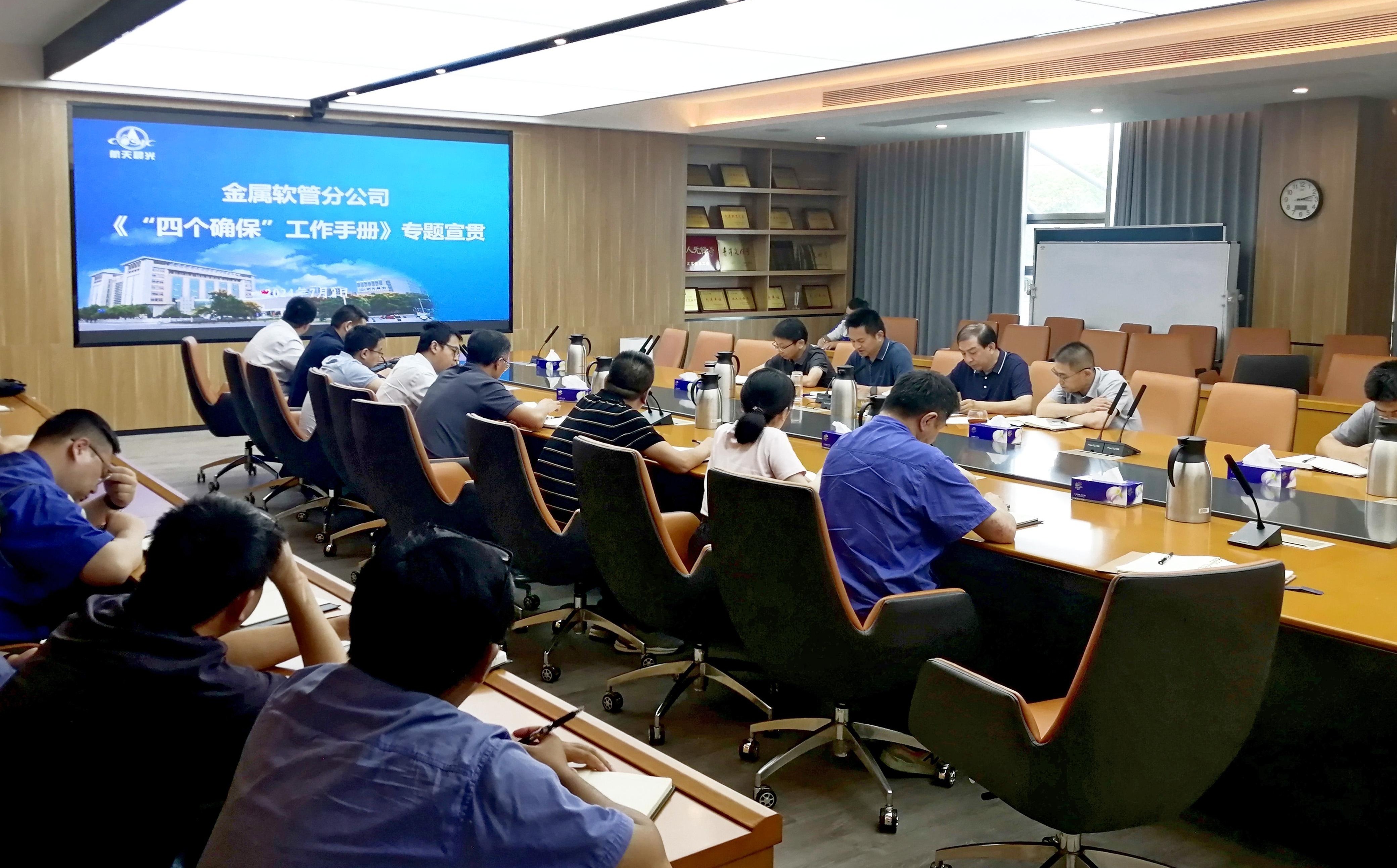 近日,航天晨光軟管分公司組織召開(kāi)學(xué)習(xí)集團(tuán)公司“四個(gè)確保”工作手冊(cè)專題會(huì)議。分公司在寧領(lǐng)導(dǎo)班子成員、各部門負(fù)責(zé)人、工段長(zhǎng)參加會(huì)議,會(huì)議由分公司總經(jīng)理薛雄建主持。